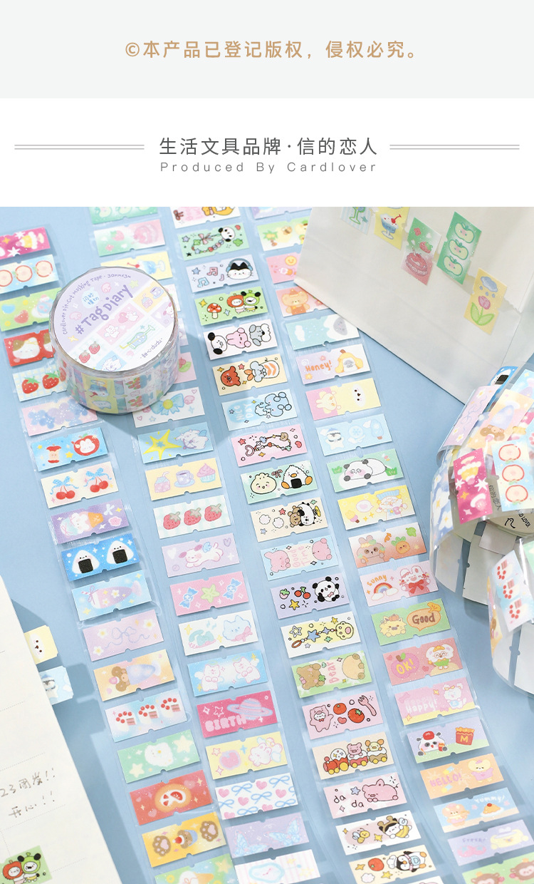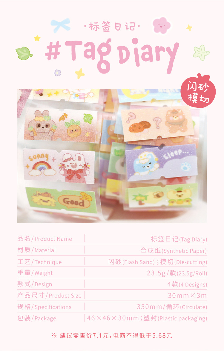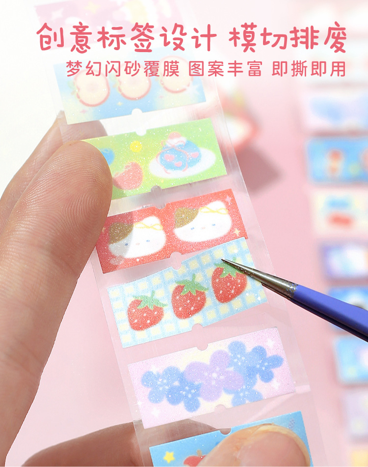 Letter Lovers Flash Sand Die Cut Synthetic Paper Tape Label Diary Series Student Hand Account Decorative Sticker Tape