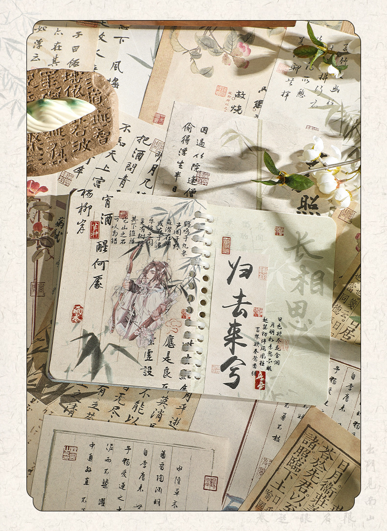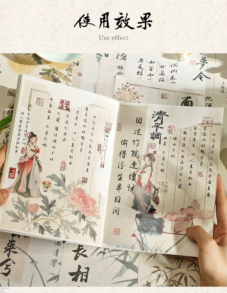 See Eslite Floating Life Half Day Series-Material Paper Retro Guofeng Calligraphy Text Hand Account diy Backing Paper