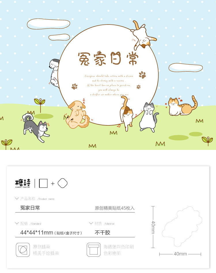 Sugar Poem Boxed Stickers Friends Daily Series Exquisite Hand-painted Illustration Cute Xiao Mao Sticker 45
