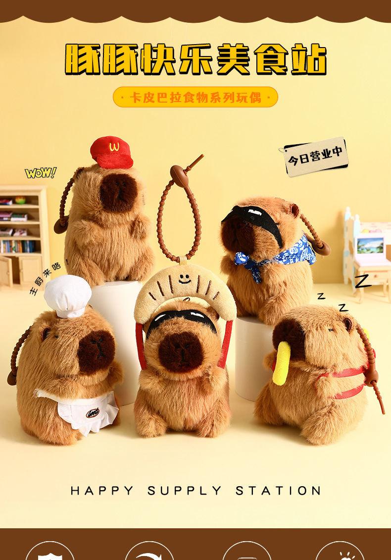 Cute Plush Dolphin Happy Food Station Creative Keychain Capibala Dolphin Bag Pendant Gift Wholesale