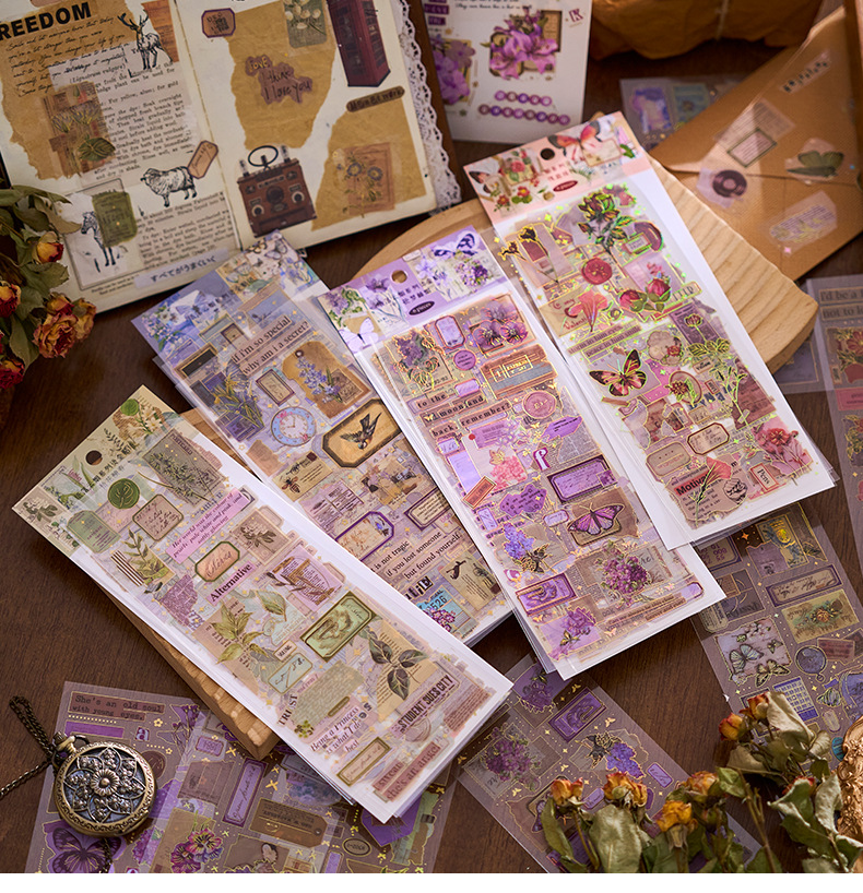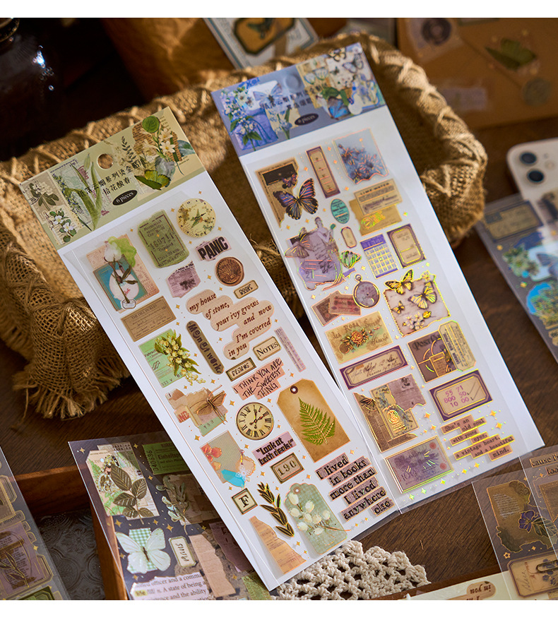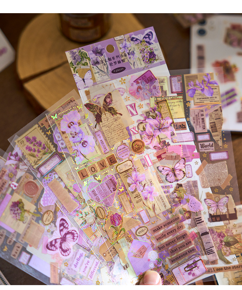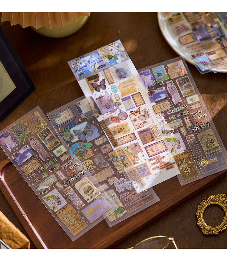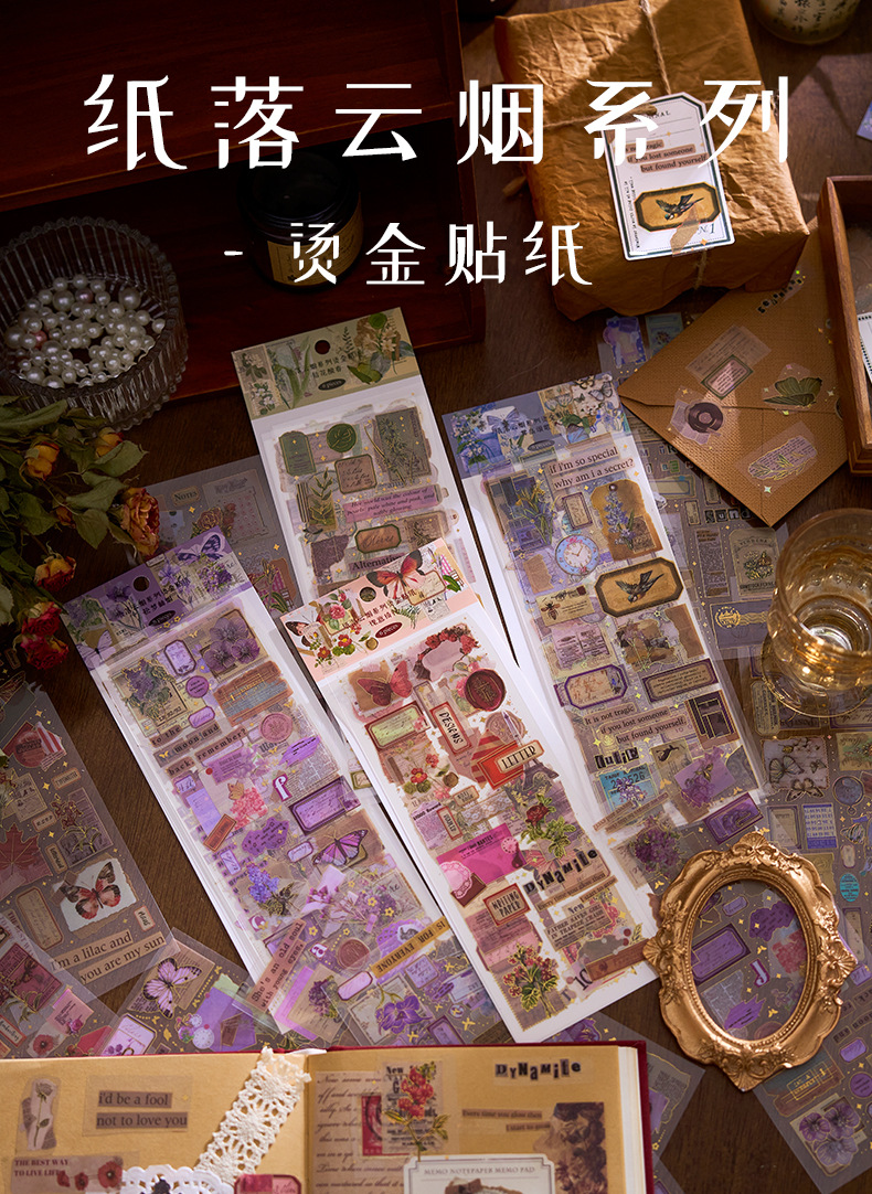 Early foam PET bronzing flat sticker paper falling cloud smoke series creative material diy hand account decoration paste 6