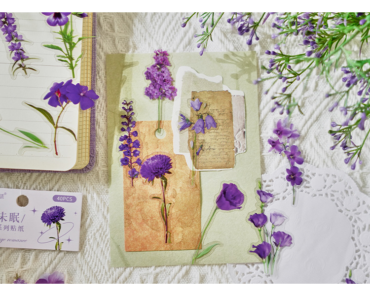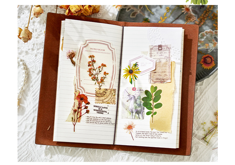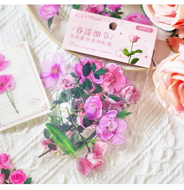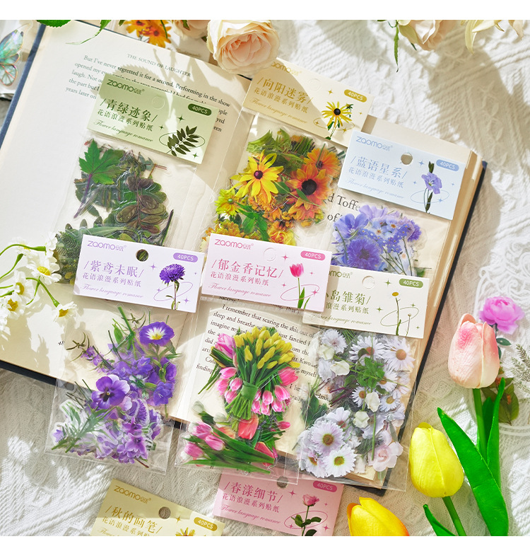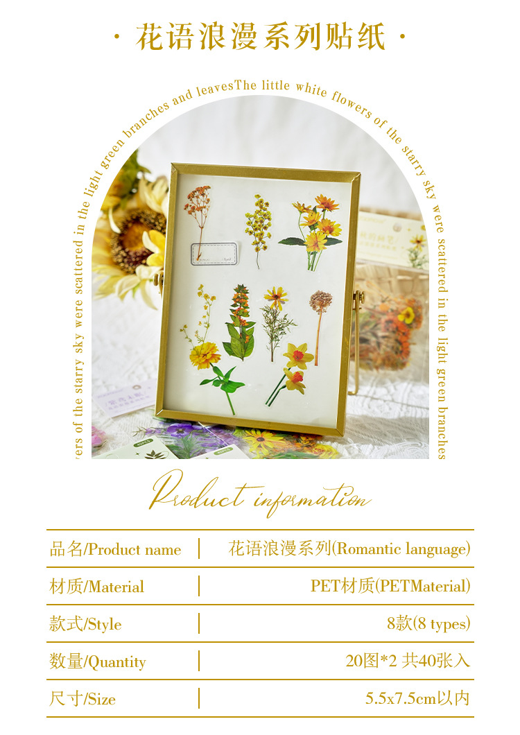 Early foam PET stickers package floral romantic series creative flower plant journal DIY material stickers 8 types selection