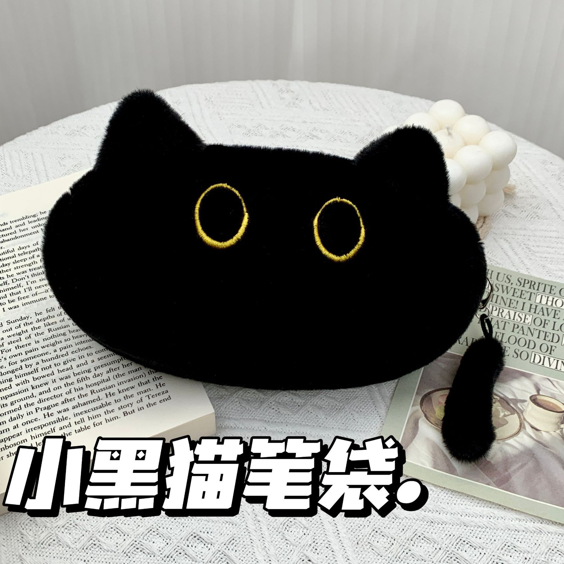 Fortune cat pen bag + [small tail] + black cat doll