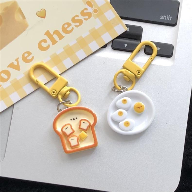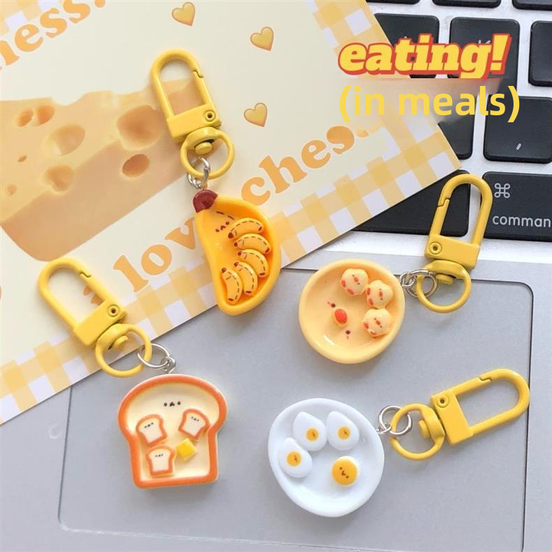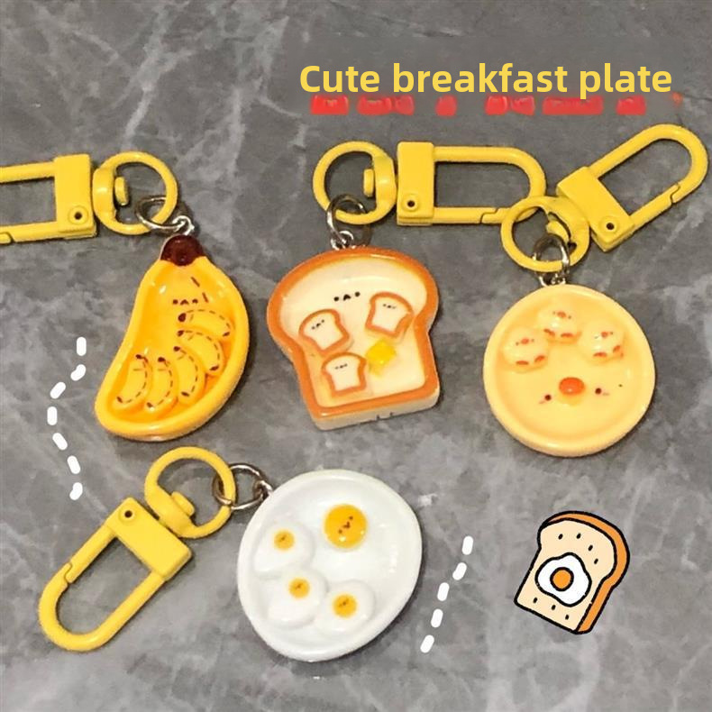 Fun Breakfast Plate Keychain Pendant Cute Girl Backpack Accessory Couple Best Friend Gift True Food Play Unique Design