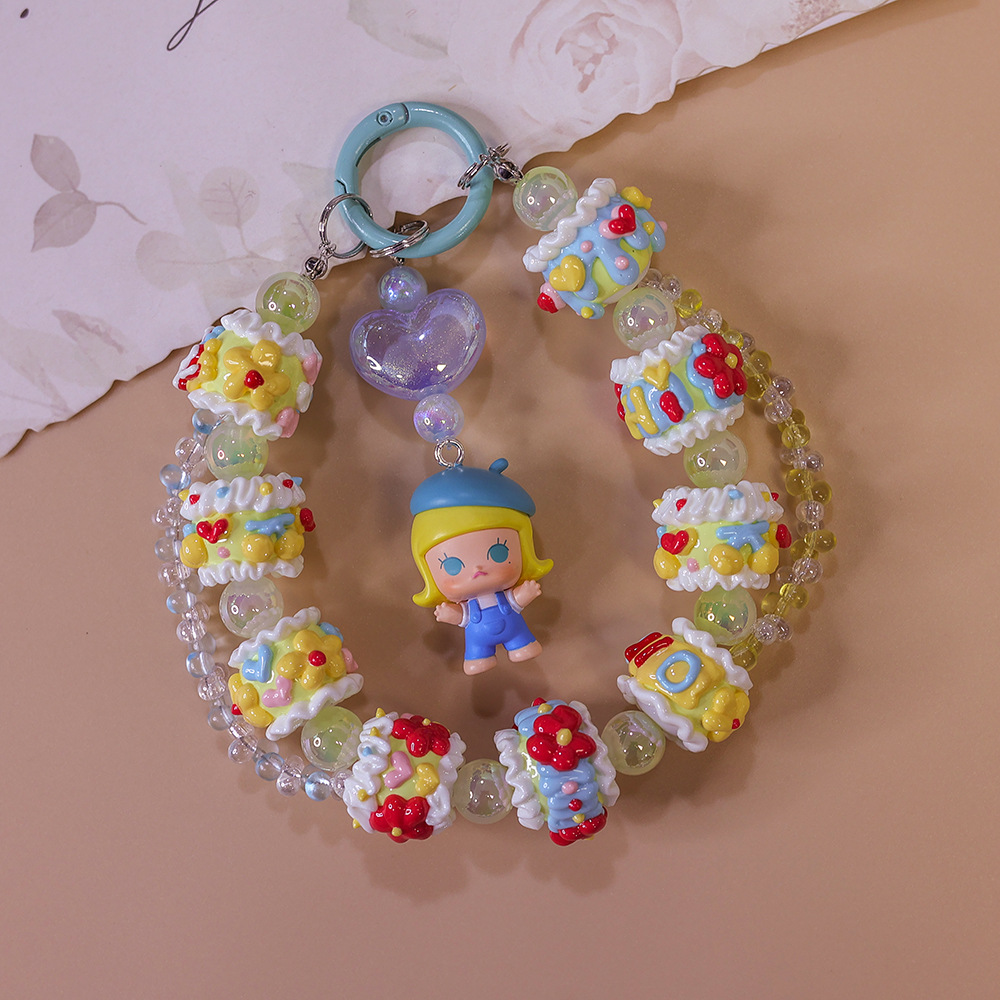Heavy Industry Hand-painted Beads Mobile Phone Chain Genuine Bubble Mart Hug Series Beaded Pendant Explosive Bag Car Hanging Accessories