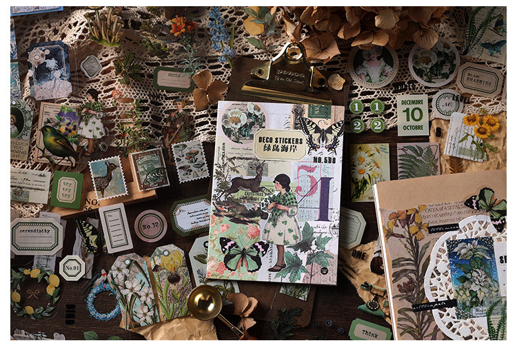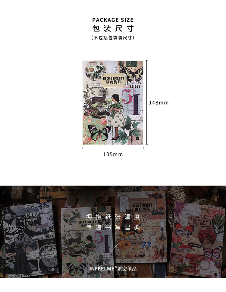 Infeel.Me PET sticker this island mountain style series retro picture guide account material decoration stickers 4