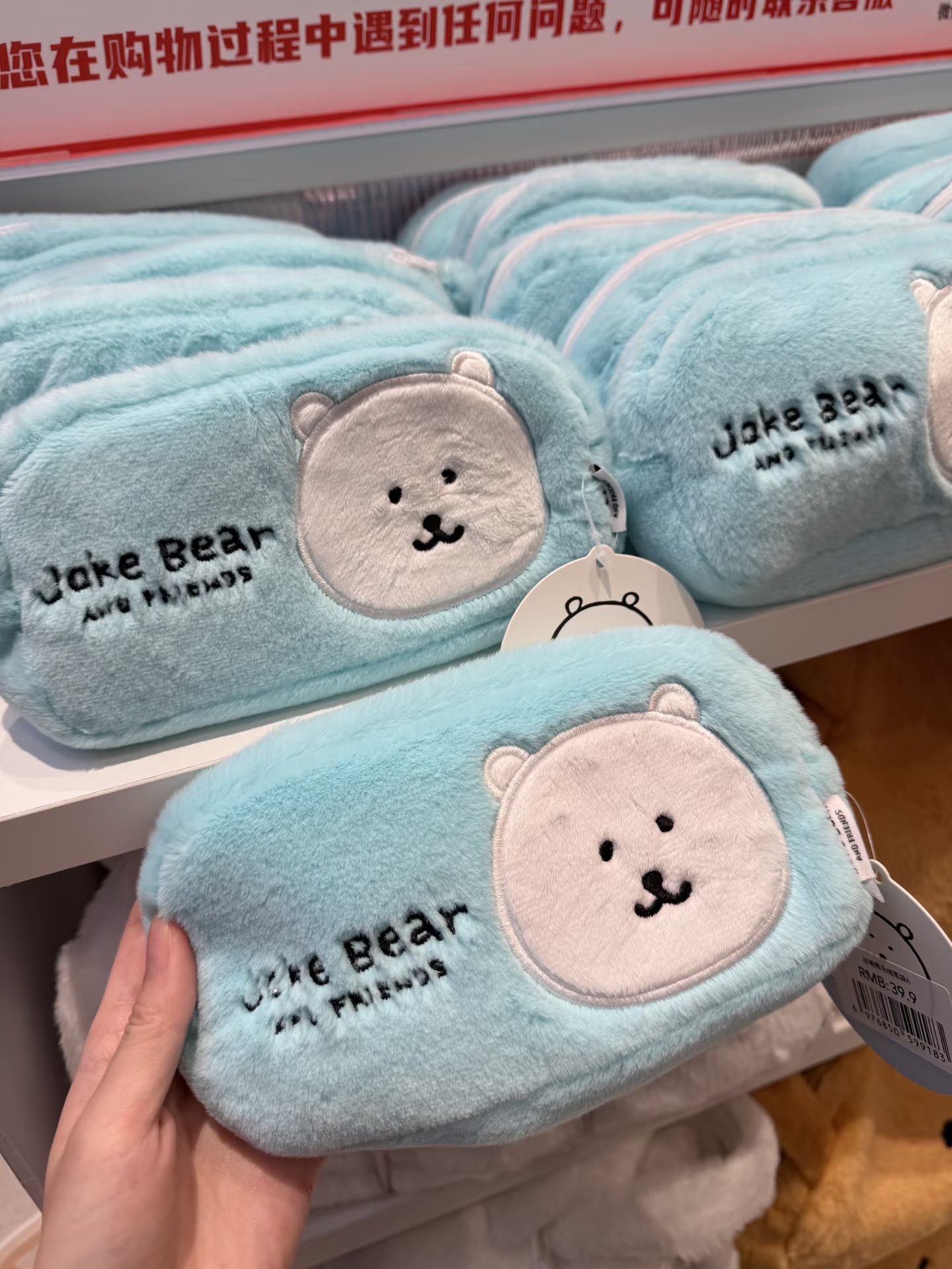 Japanese Cute Self-deprecating Bear Pencil Bag High-value Large-capacity Stationery Box Plush Cartoon Girl Heart Learning Storage Bag