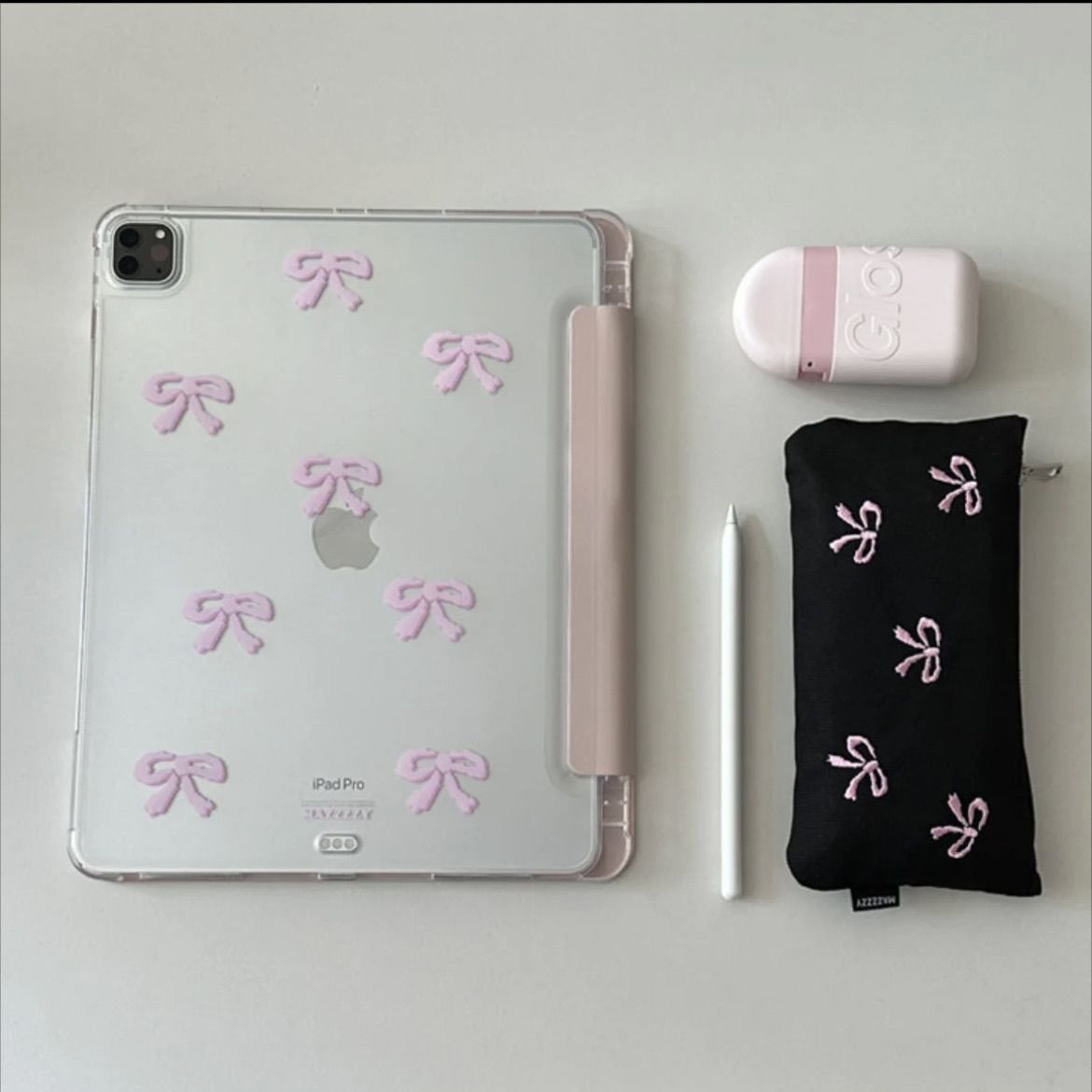 Japanese Style Cute and Sweet Girly Heart Embroidered Bow Atmosphere Niche Pencil Bag Stationery Bag Cosmetics Storage Bag