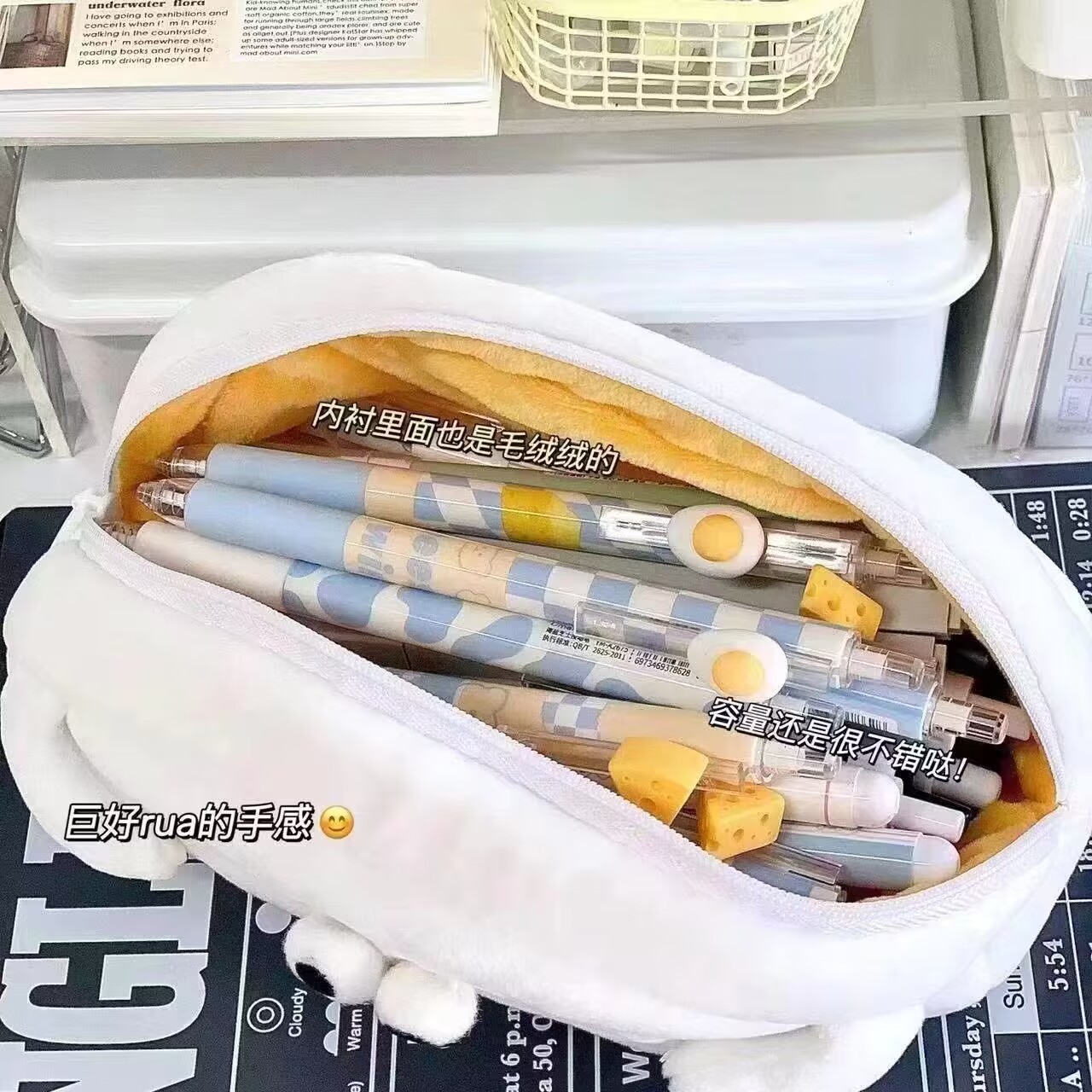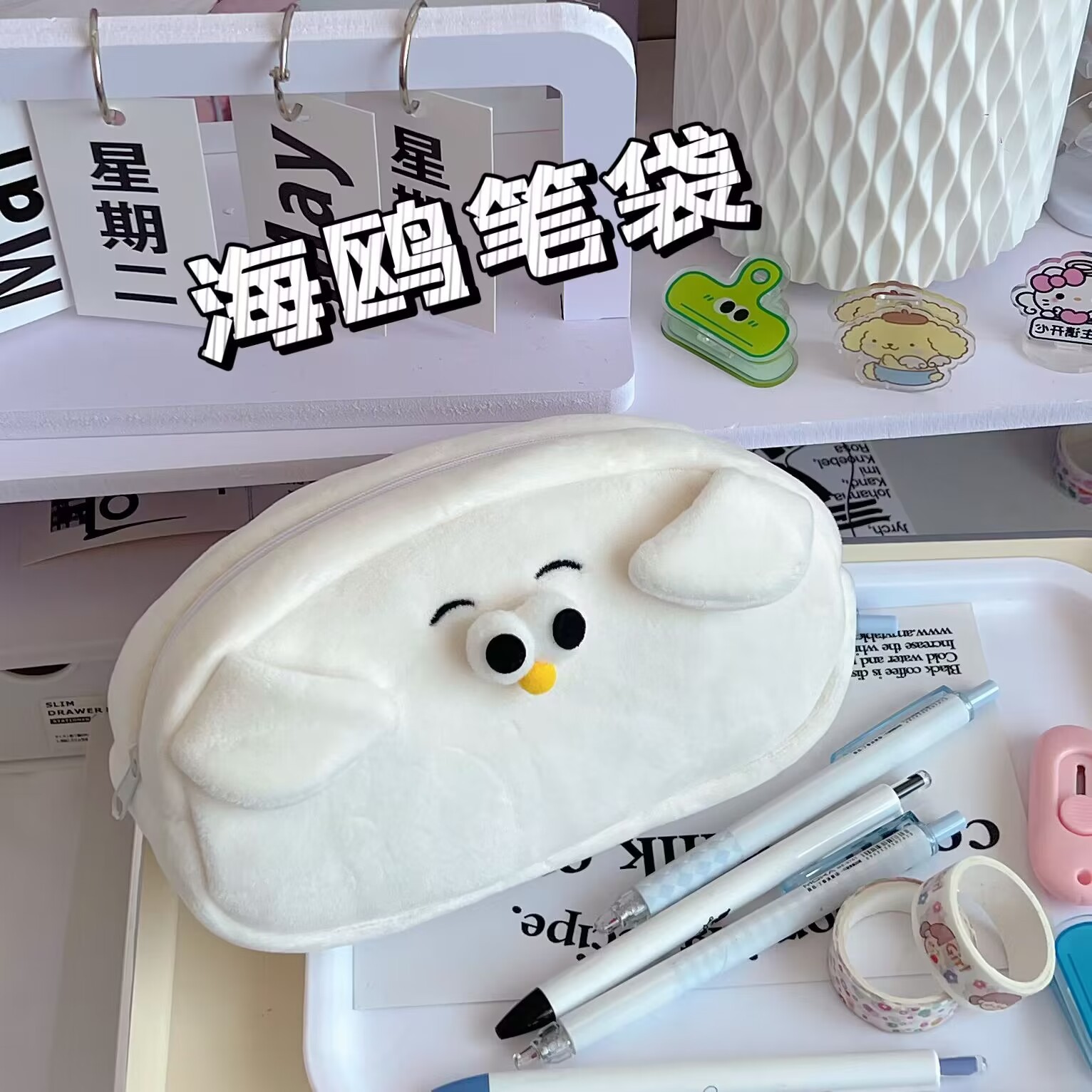 Little Red Book with Plush Seagull Pencil Bag Funny Small Sand Sculpture Stationery Bag Student Large Capacity Storage Pencil Bag