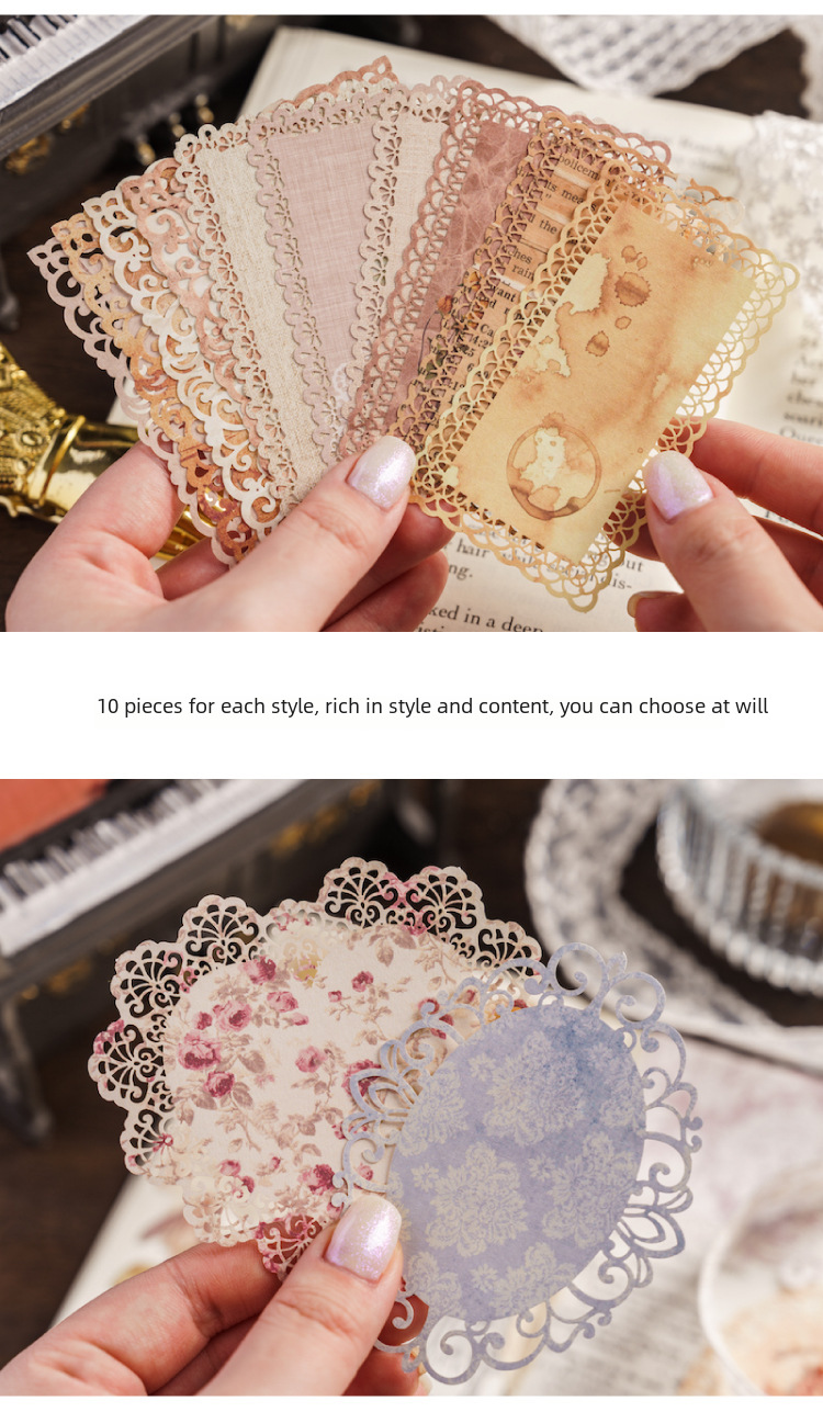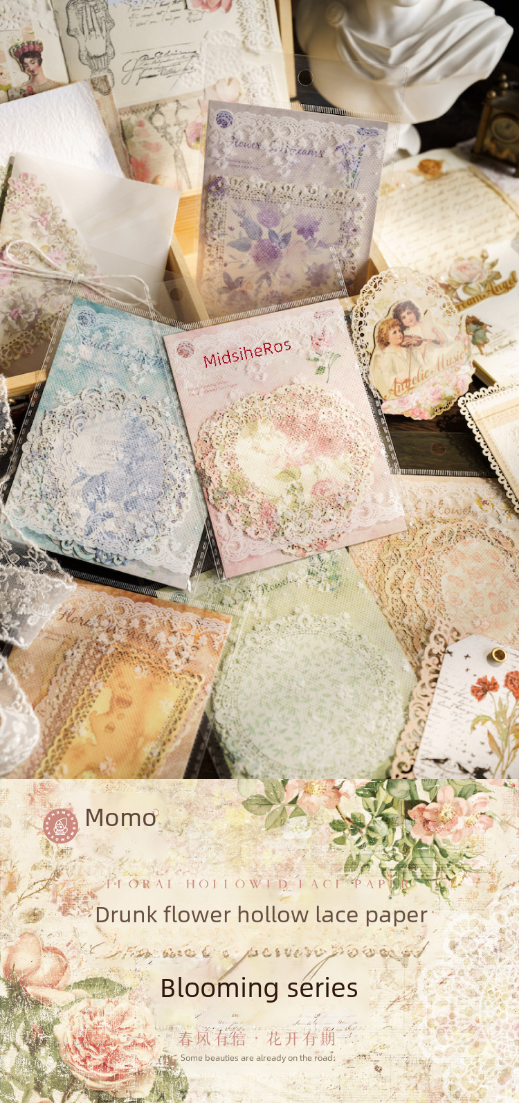 Mo ink lace paper flowers open period series hollow retro floral hand account decoration material stickers 10