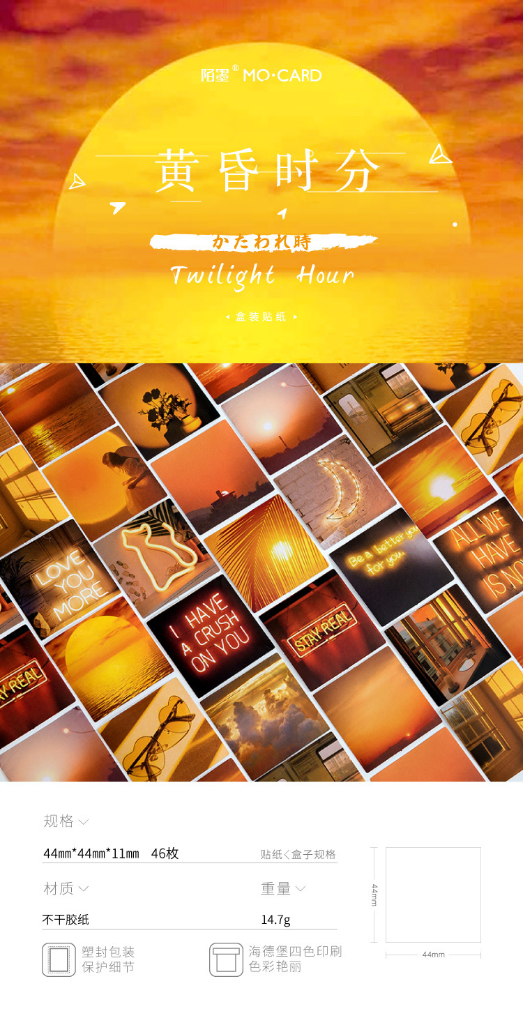 Mo Mo Boxed Stickers INS Scenery Handbook Diary DIY Decorative Seal Stickers 46 at Dusk