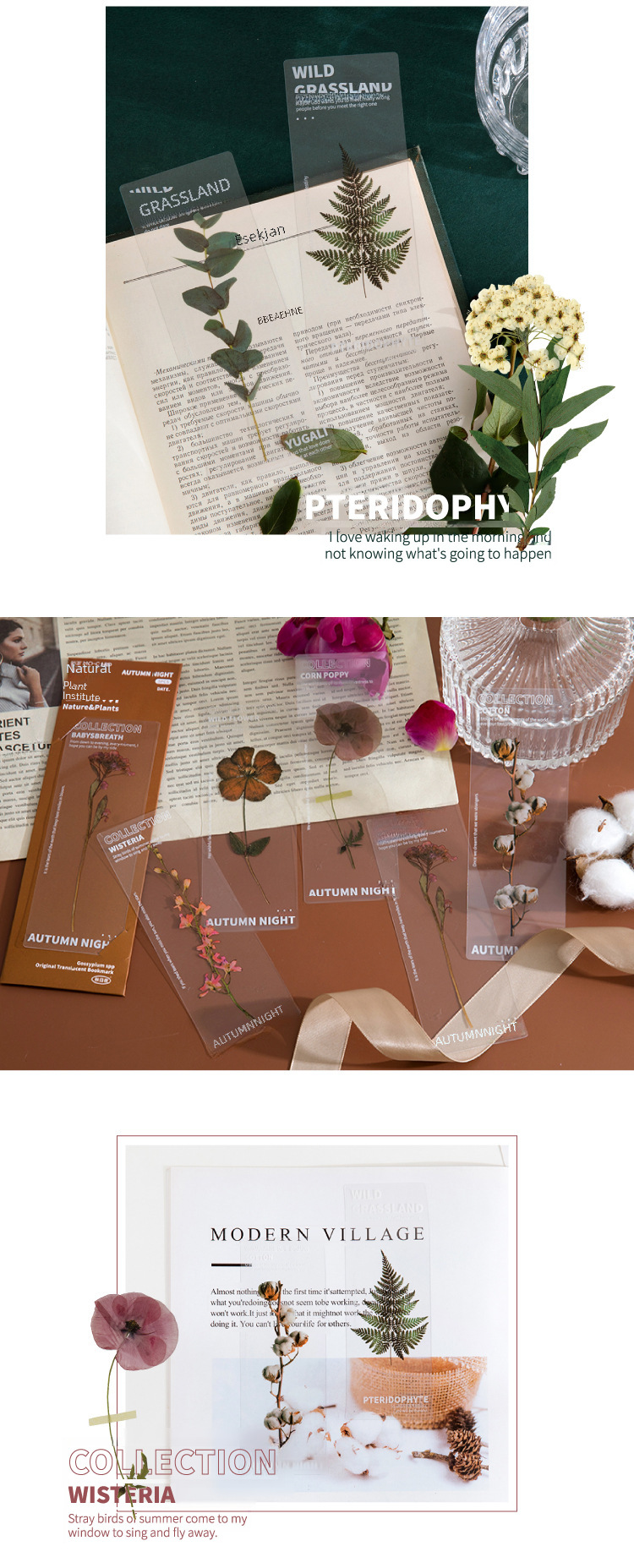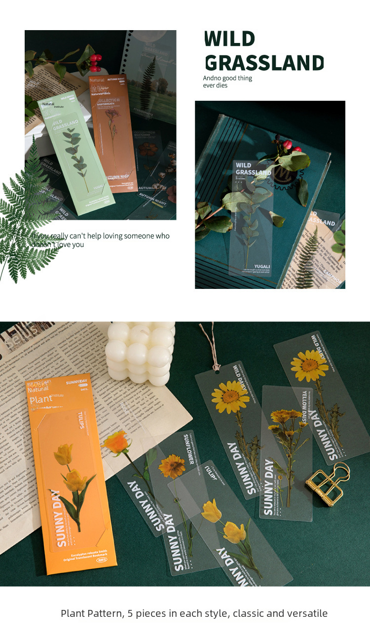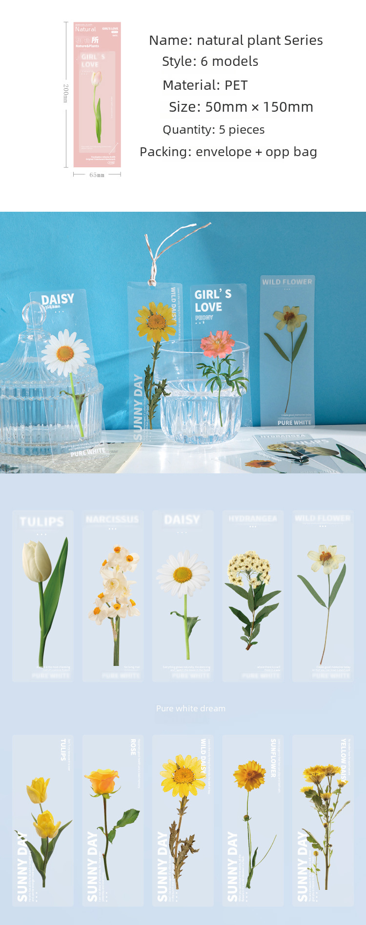 Mysterious Pet Semi-transparent Bookmarks Natural Plant Series Ins Style Handbook Diy Material Decoration 5 Pieces In 6 Styles