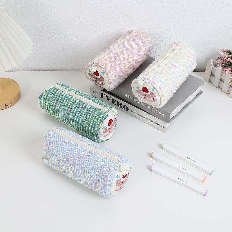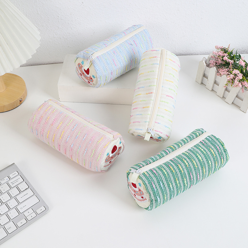 New Cute Cartoon Strawberry Cake Pencil Bag All-match Girl's Heart Stationery Storage Bag Large Capacity Pen Ruler Stationery Box