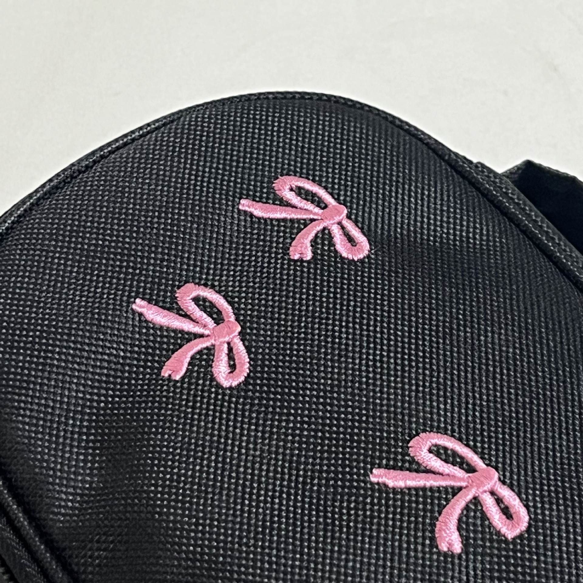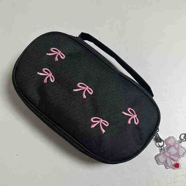 Portable Cute Bow Pencil Case Solid Color Embroidery Large Capacity Niche Stationery Storage Bag Cosmetic Bag Dirty Resistant