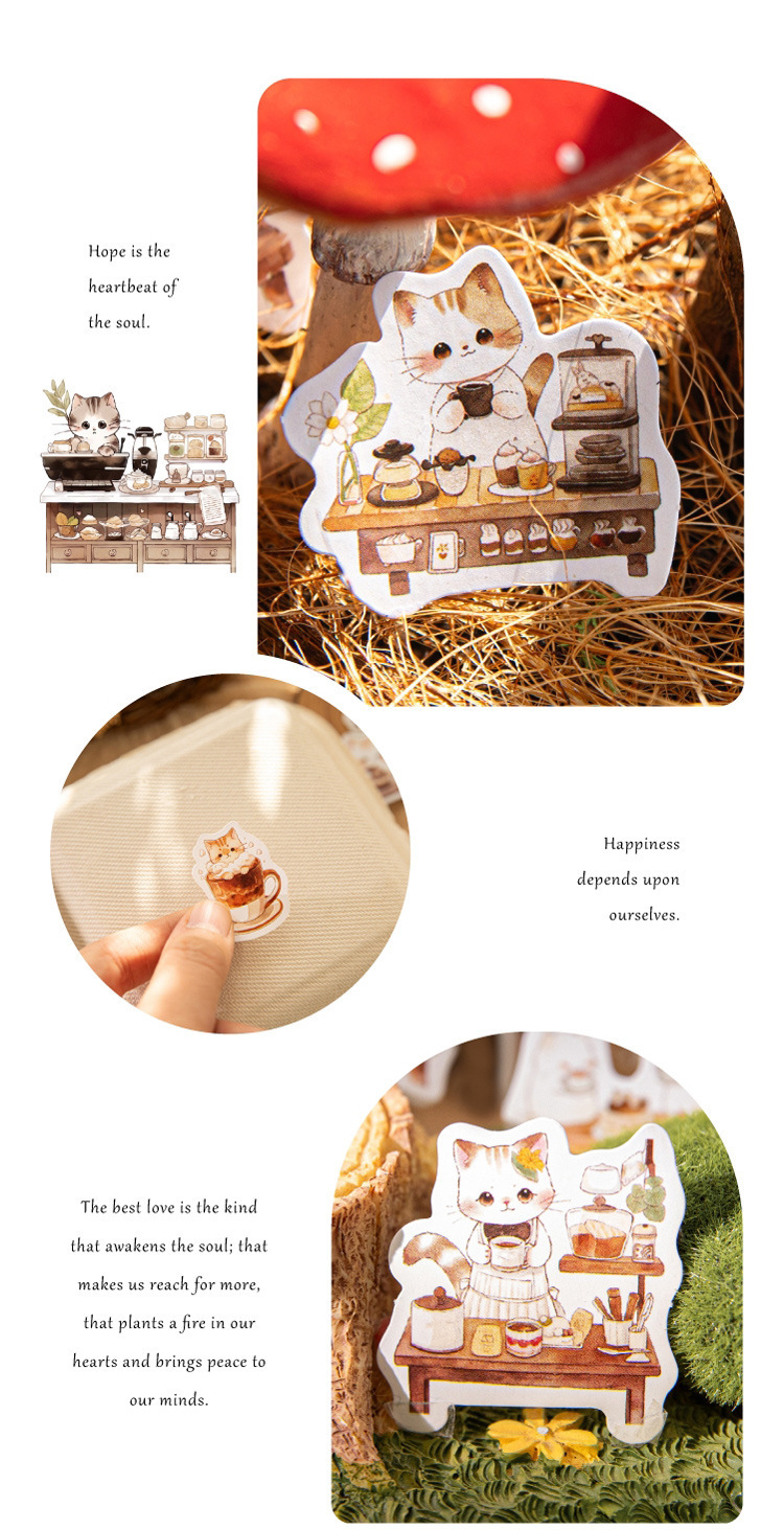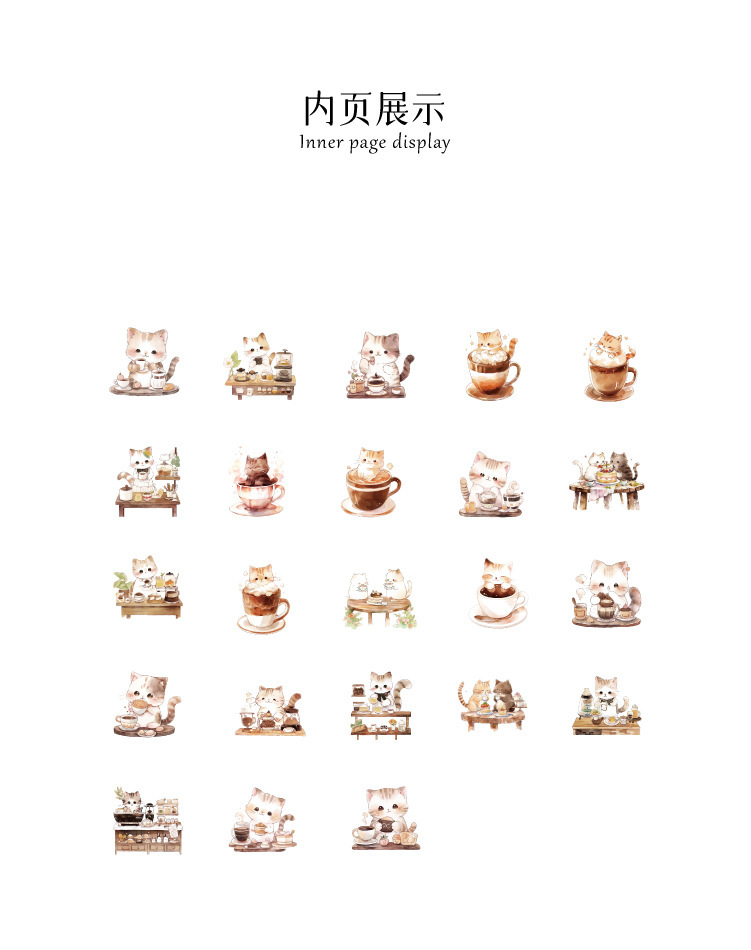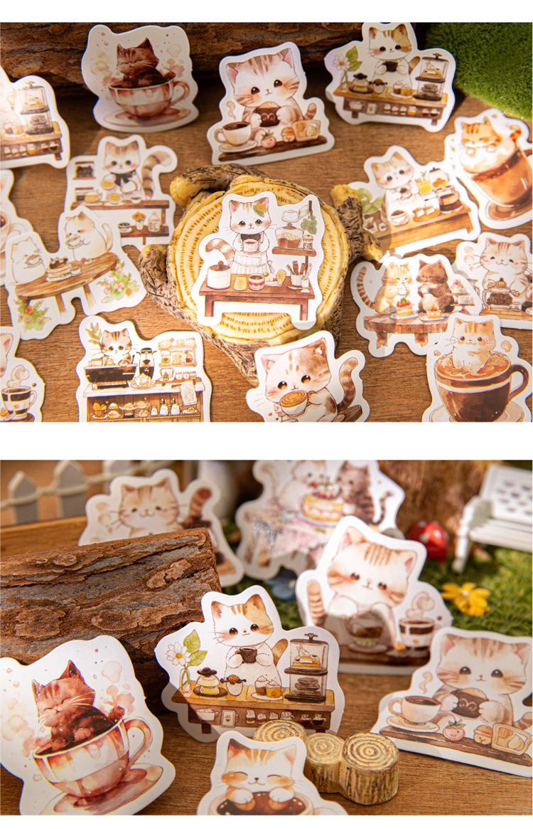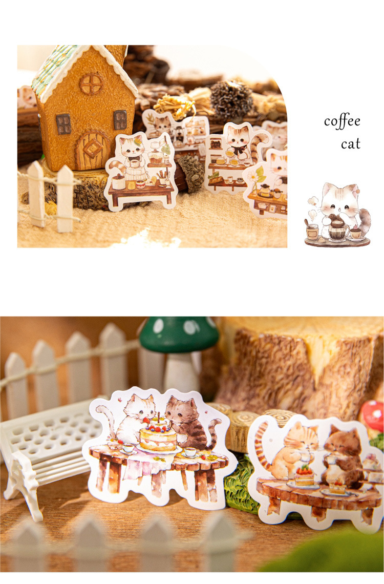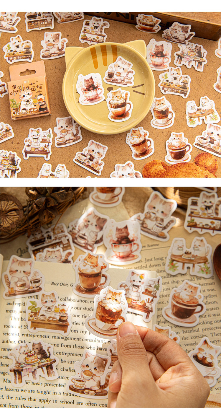 Sugar poem boxed sticker coffee meow meow series cute cartoon kitten hand account diy sticker material sticker